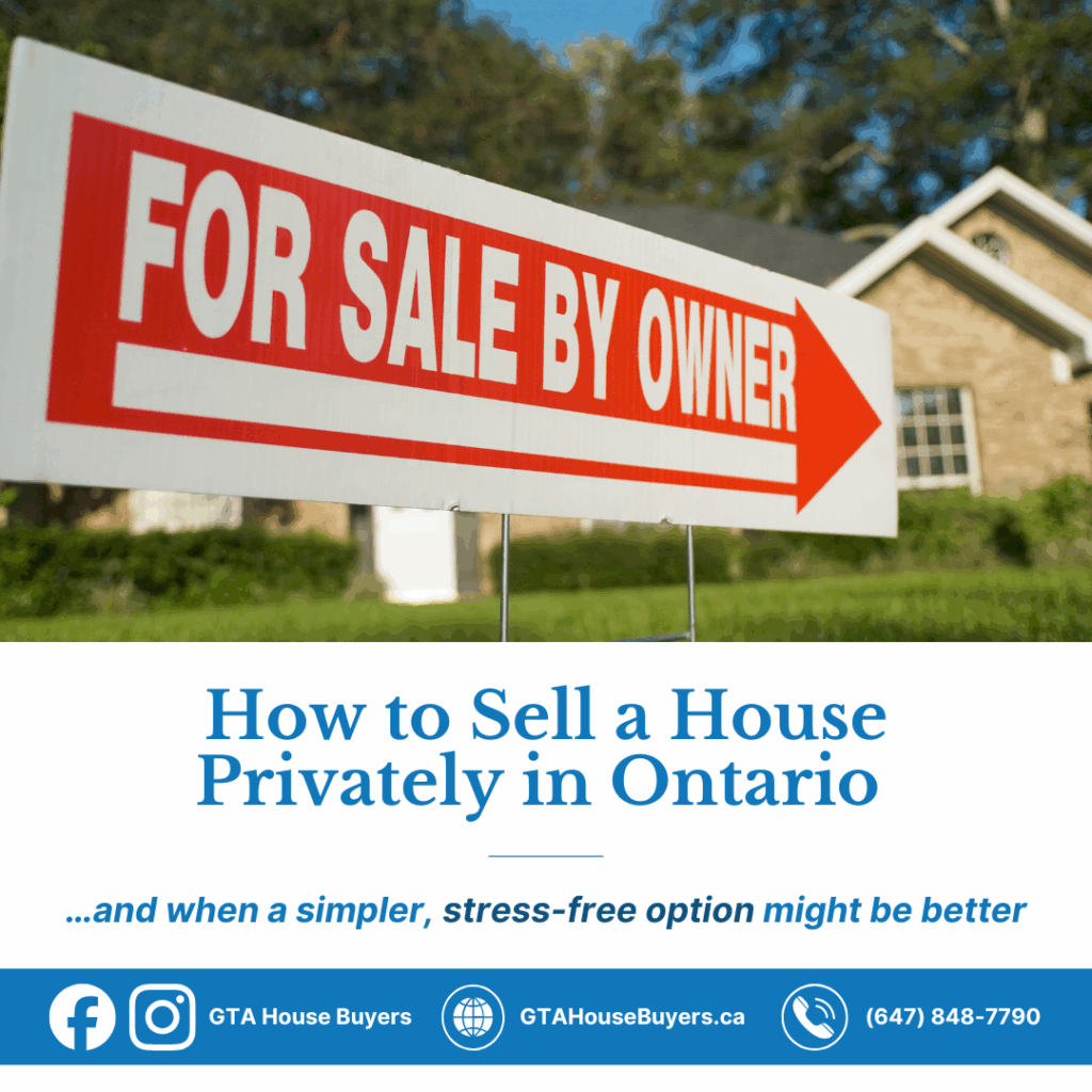 This article explains how to sell a house privately in Ontario, what steps you’ll need to take, and the pros and cons of doing it yourself. Then we’ll look at when a private sale might not be the easiest path and how GTA House Buyers can offer a simpler, stress-free alternative with no open houses, no major repairs, and no waiting months for offers.